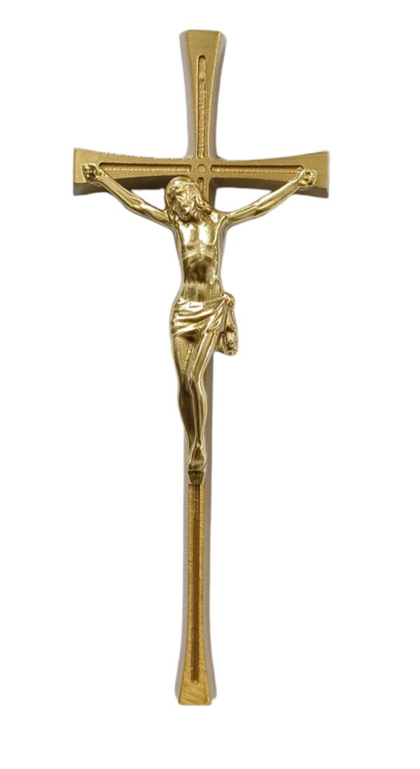 Krzyż nagrobny- na pomnik 20 cm z pasyjką (jasne złoto) KM20
