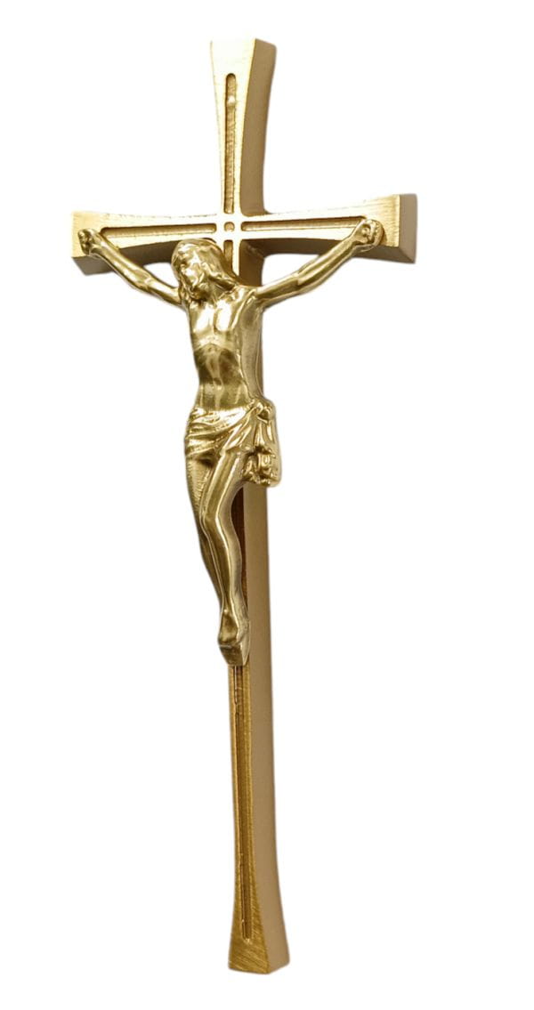 Krzyż z pasyjką w kolorze jasnego złota 20cm