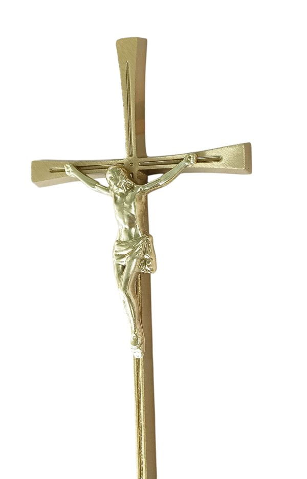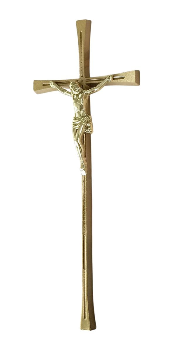 Krzyż nagrobny- na pomnik 29 cm z pasyjką (jasne złoto)