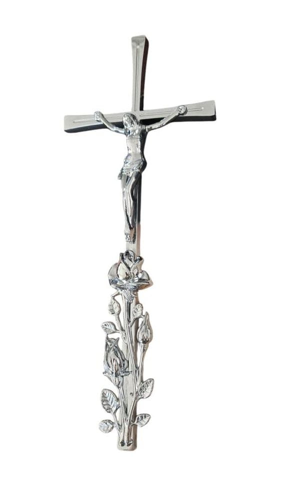 Krzyż nagrobny - na pomnik 50 cm z różą (chromowany)