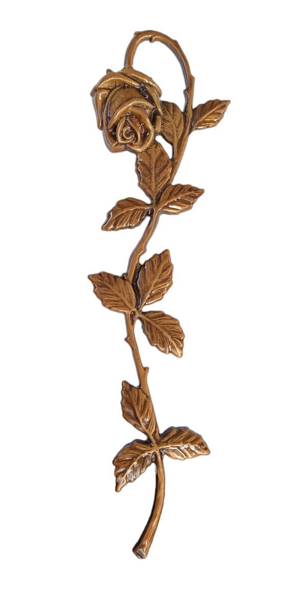 Róża odlewna z brązu pokryta lakierem o bardzo dużej wytrzymałości na czynniki zewnętrzne-trwały wyrób.