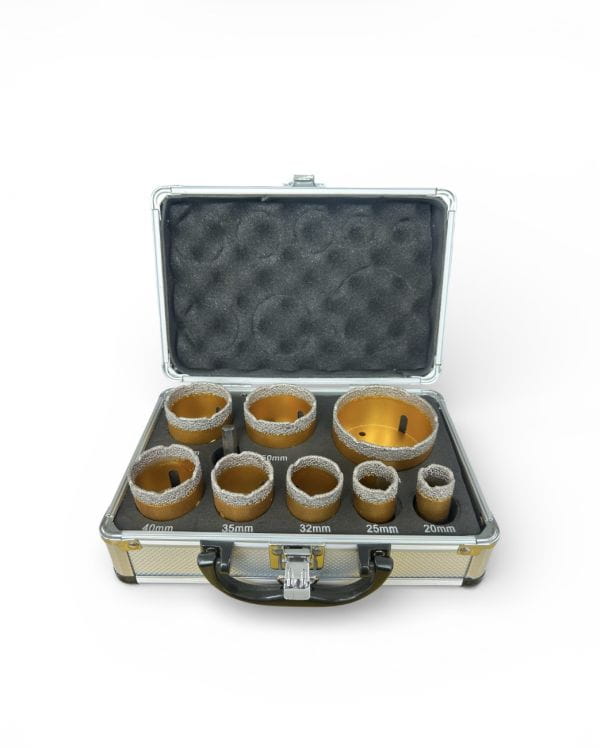 Zestaw otwornic diamentowych powlekane galwanicznie przeznaczony do cięcia twardych materiałów.